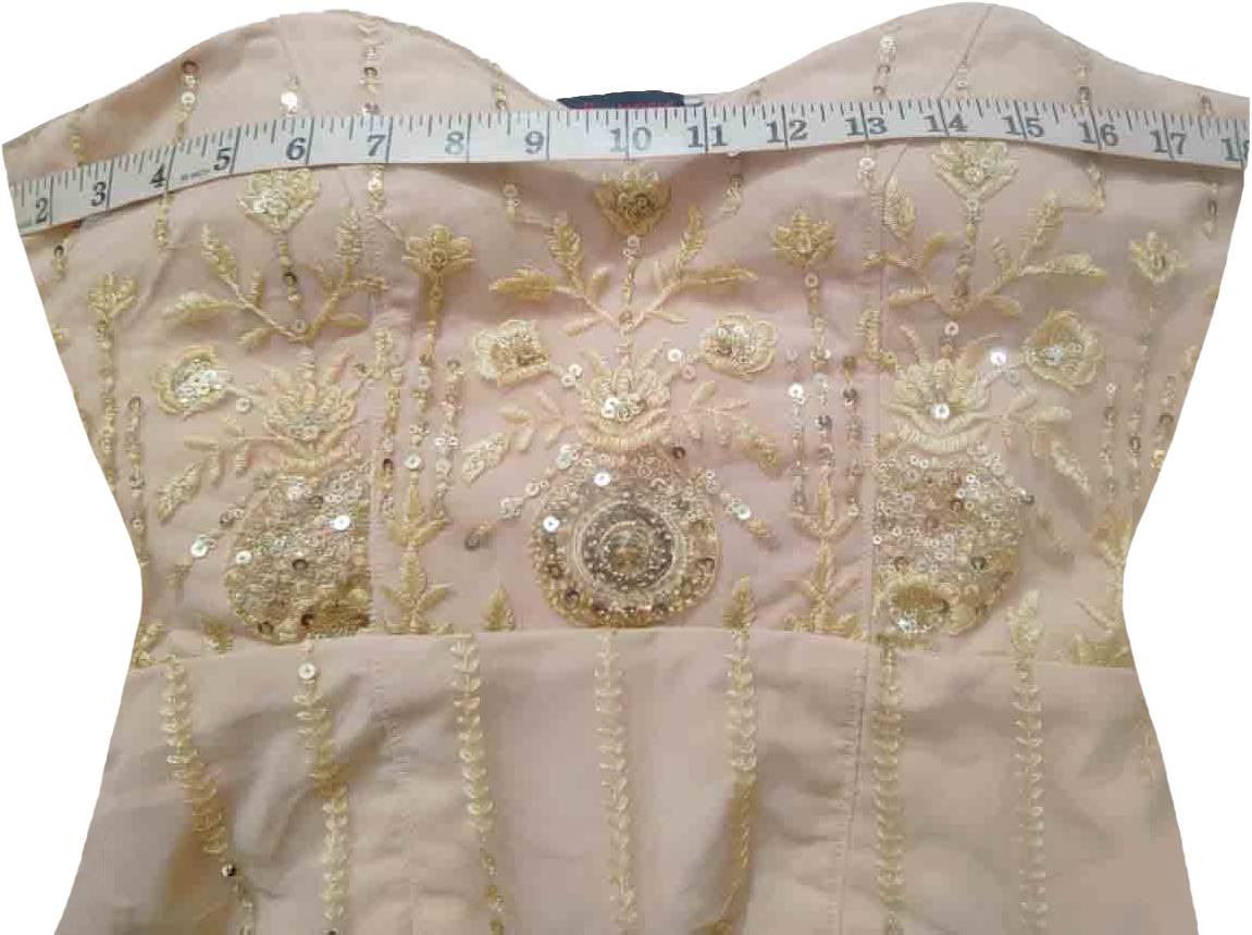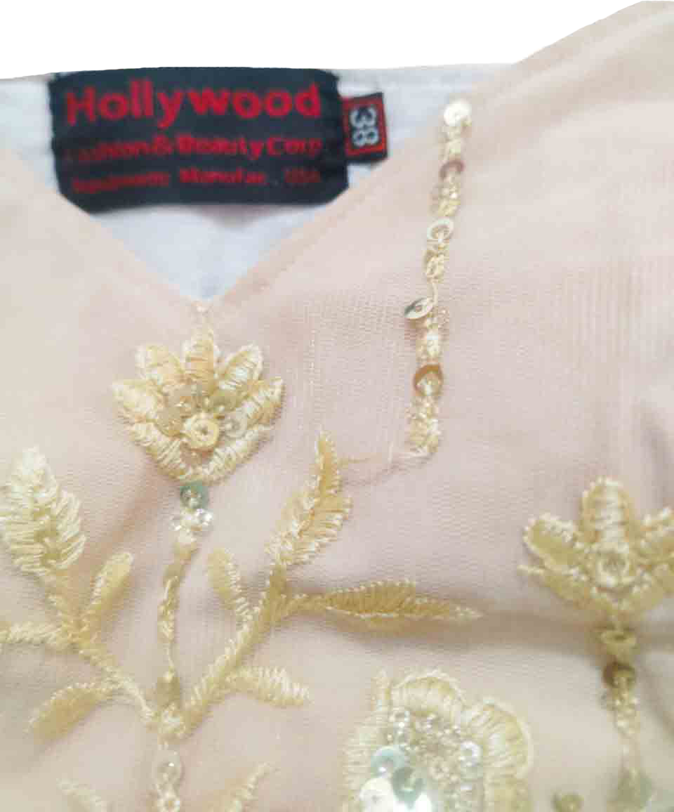 Gold Sheer Sleeves Embroidered With Sequin Decorative Beaded Evening Apparel