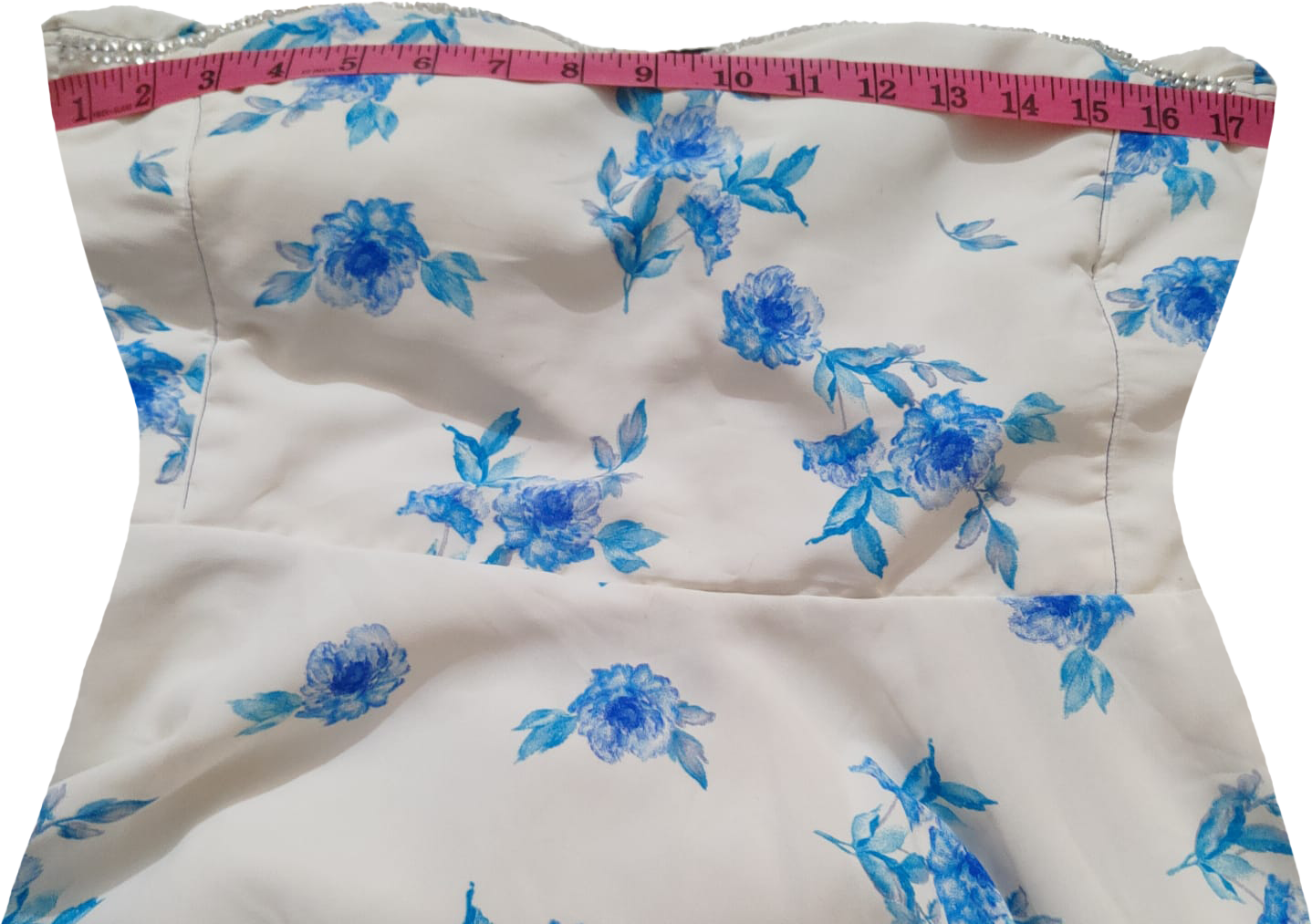 Off Shoulder Arm Sleeve Floral Matching Blue Lace White Background