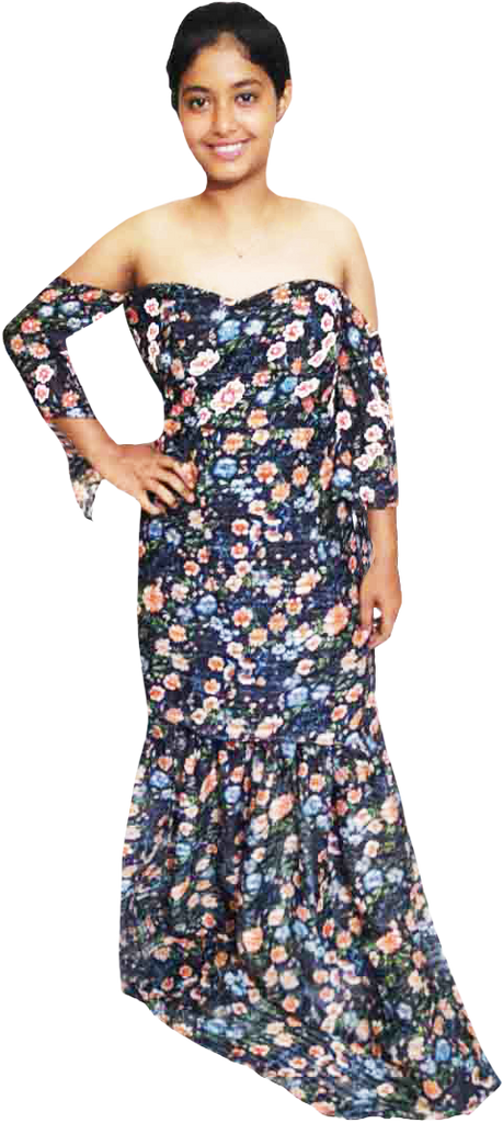 Off Shoulder Floral Patterned Artistic Beaded Embellishment