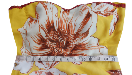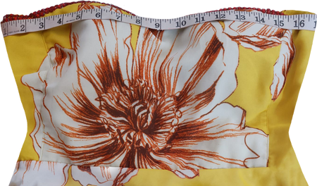 Off Shoulder Floral Yellow And Red Printed Gown With Red Beaded Trim