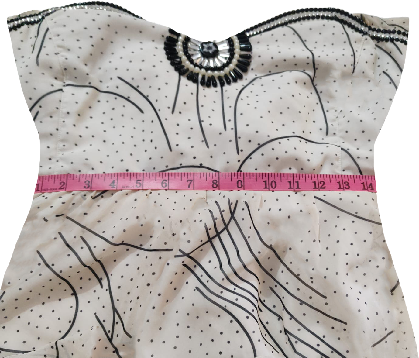 Off Shoulder Hand Stitched Artful Matching Black & White Beaded Decora