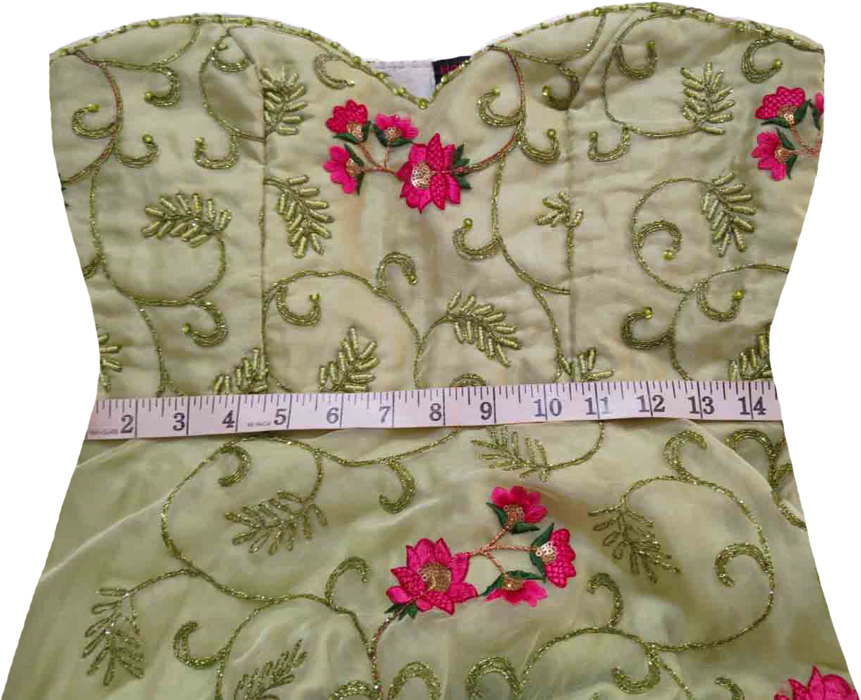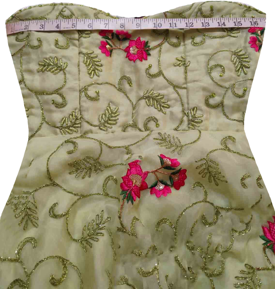 Off Shoulder Light Green Floral Design Fancy Hand Embroidered Beaded D