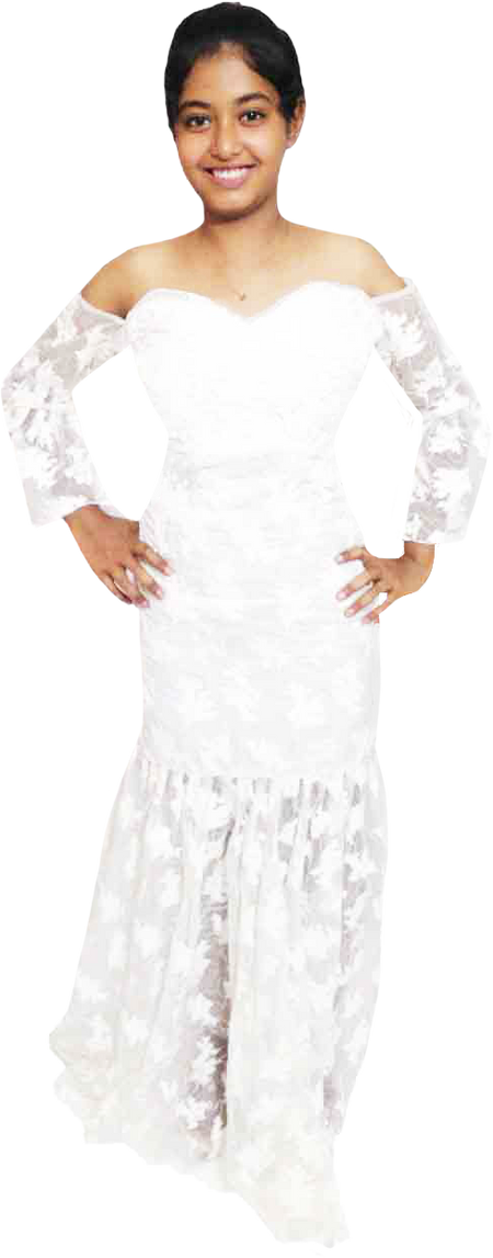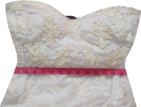 Off Shoulder White Floral Design Hans-Stitched Fancy Beaded Embellishment