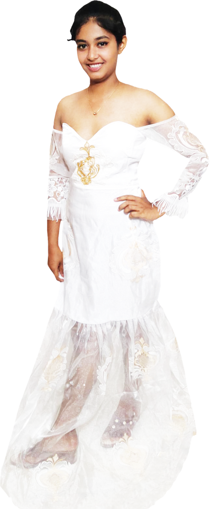 White Off-Shoulder V Neck With Floral Handmade Beaded Artistic Fabulou